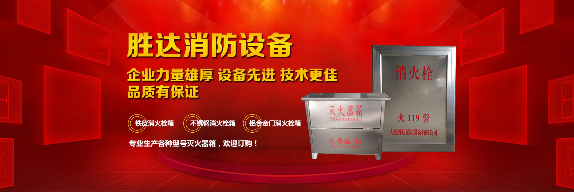 大連勝達(dá)消防設(shè)備有限公司本公司企業(yè)力量雄厚、設(shè)備先進(jìn),生產(chǎn)的所有消防產(chǎn)品均符合國家GB14561—J標(biāo)準(zhǔn),品質(zhì)有保證。我公司地理位置優(yōu)越,位于大連市甘井子區(qū)西北路847號交通便捷,公司專業(yè)生產(chǎn)各種型號滅火器箱、消火栓箱、鐵皮消火栓箱、不銹鋼消火栓箱、鋁合金門消火栓箱。消火栓箱系列產(chǎn)品,全部按照國家標(biāo)準(zhǔn)和行業(yè)標(biāo)準(zhǔn)進(jìn)行生產(chǎn),并通過國家合格鑒定,得到了國家固定滅火系統(tǒng)和耐火構(gòu)件質(zhì)量監(jiān)督檢驗(yàn)中心的產(chǎn)品認(rèn)證和產(chǎn)品形式報告書。我們的消火栓箱系列產(chǎn)品具有外形美觀、結(jié)構(gòu)先進(jìn)、開啟靈活、使用可靠、消火應(yīng)急燈具標(biāo)志清晰、光色好、功耗低、使用壽命長、安裝使用簡便,可廣泛應(yīng)用于高層建筑和工業(yè)等一些公關(guān)場所使用。